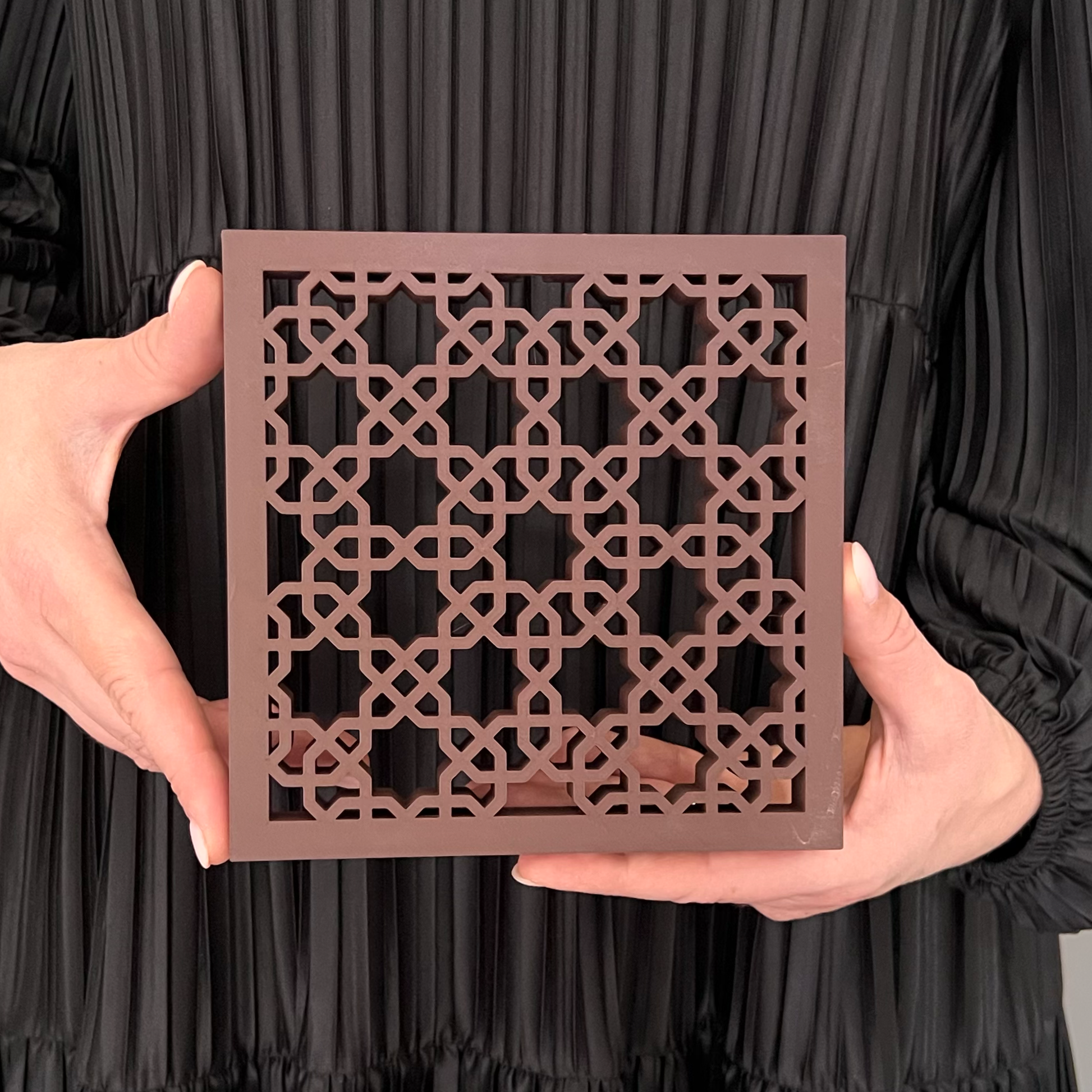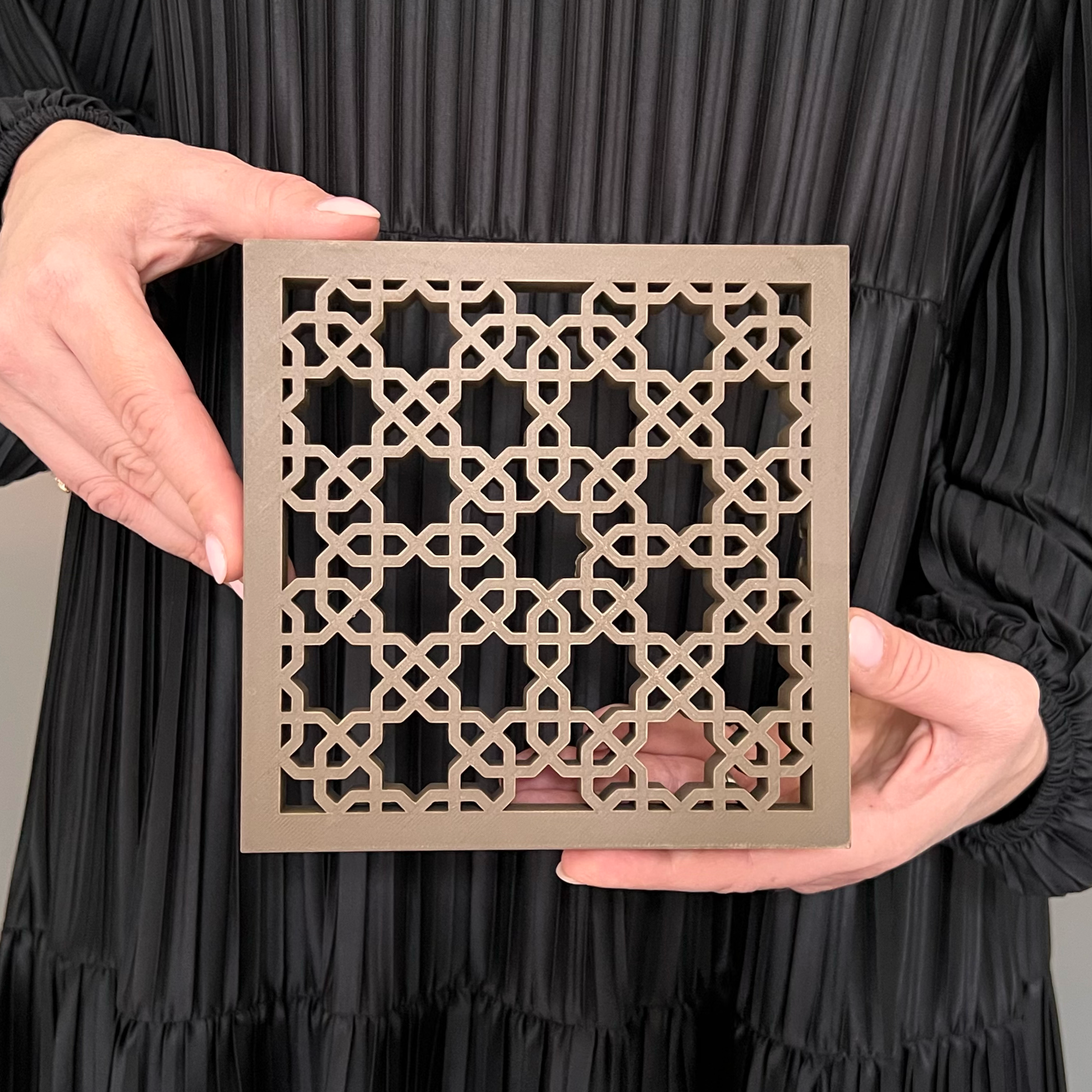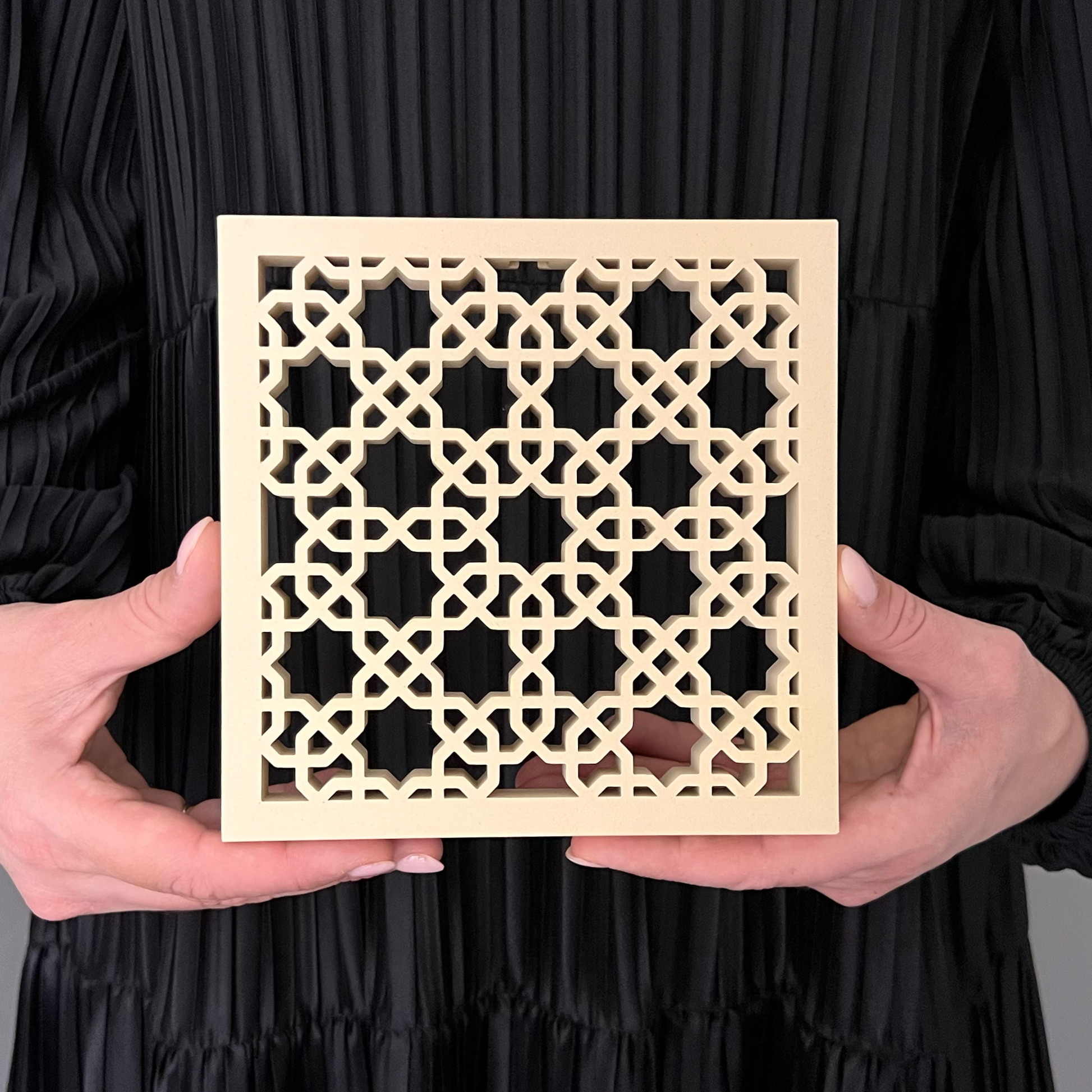 Digitally modelled for precision and crafted with premium wood PLA, each piece is carefully shaped and hand-finished to sharpen the geometry and clarify the edges of the design. Multiple protective coatings are applied to preserve the surface, enhance contrast, and ensure durability with a smooth finish.