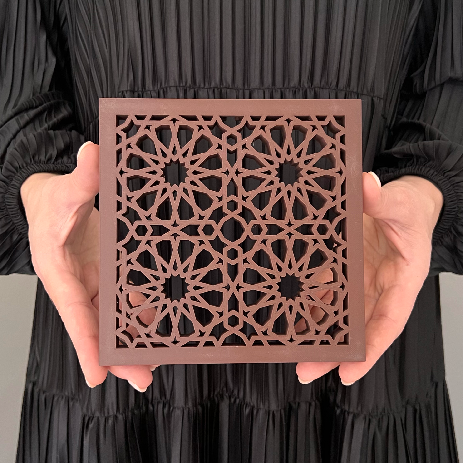 Digitally modelled for precision and crafted with premium wood PLA, each piece is carefully shaped and hand-finished to highlight its clean, interlocking forms. Multiple protective coatings are applied to preserve the surface, enhance contrast, and ensure durability with a smooth, matte finish.